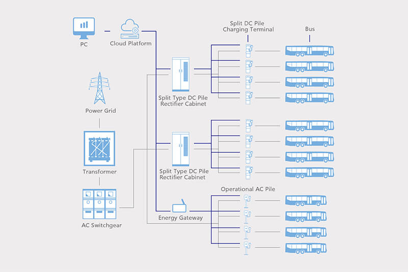 La solution de charge convient à certaines stations de stationnement des véhicules en bus et en assainissement, où un grand nombre de véhicules électriques sont stationnés et chargés de manière ordonnée. Les bus sont des véhicules opérationnels, qui ont des exigences élevées pour une recharge rapide, une recharge nocturne et d'autres charges sûres. Rockwill Charging Products basé sur une machine divisée et quatre armes à feu offrent aux clients de l'industrie des transports publics des solutions diversifiées pour obtenir un déploiement rapide et flexible de systèmes de charge. La solution est équipée d'une plate-forme de système de gestion des opérations de charge et d'une plate-forme de serveur cloud pour répondre aux besoins de la gestion des opérations de charge de charge et faciliter les utilisateurs finaux pour saisir les informations de charge en temps opportun. Dans le même temps, il prend en charge Ethernet, 4G, CAN et d'autres modes de communication, ce qui est pratique pour le contrôle centralisé de la plate-forme de gestion des opérations de pieu.